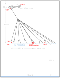 Diagram of helicopter-borne electromagnetic survey system, courtesy Xcalibur Smart Mapping.